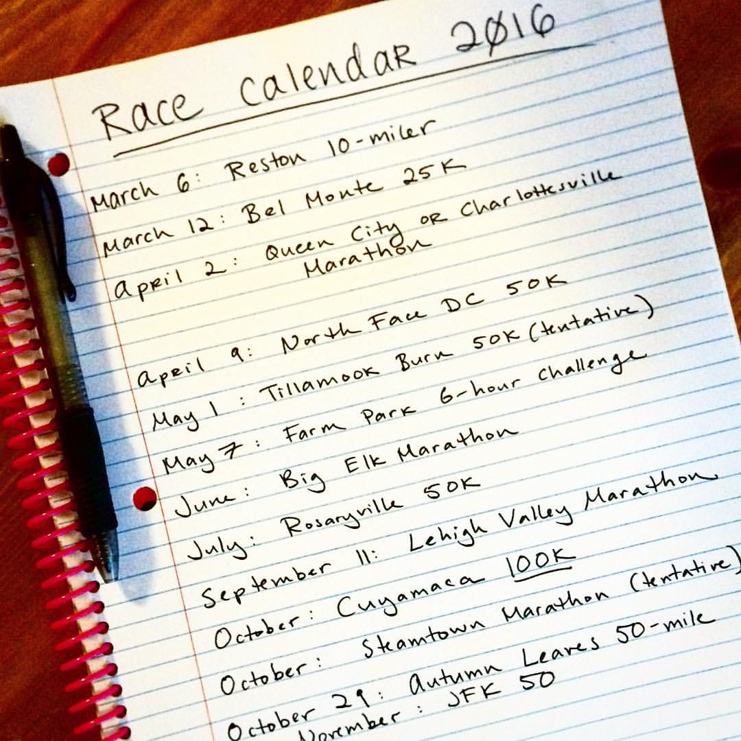 As we said bye to 2015, I reflected on my big races last year, which were the Reston 10-miler, Queen City Marathon (DNF), The North Face 50K, Big Elk Marathon, Rosaryville 50K and The Bear Chase 50-miler. Overall, it was a great year. It went from not being able to finish a marathon because I couldn’t handle the 10-degree weather to suffering through 50Ks in 100-degree, horribly humid weather in the middle of summer. My year culminated with a failed-100K-turned-50-miler(read about my missing the time cutoff last year here). I also mentioned in a previous post that following the Bear Chase, I began training for the 10K distance. While I didn’t become super fast over the course of those 12 weeks, I did cut my time by about 5-6 minutes, and I think the “speed” training really helped shake up what my body was used to and helped prepare me physically and mentally for this year.