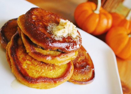 When it comes to breakfast or brunch, I'd much rather have eggs and bacon than I would pancakes or french toast. But there was something about this morning's chill in the air that just screamed pancakes. And if I make pancakes once a year, you better believe they're going to be fluffy, a little sweet, … Continue reading Pumpkin-Ricotta Pancakes with Homemade Honey Butter